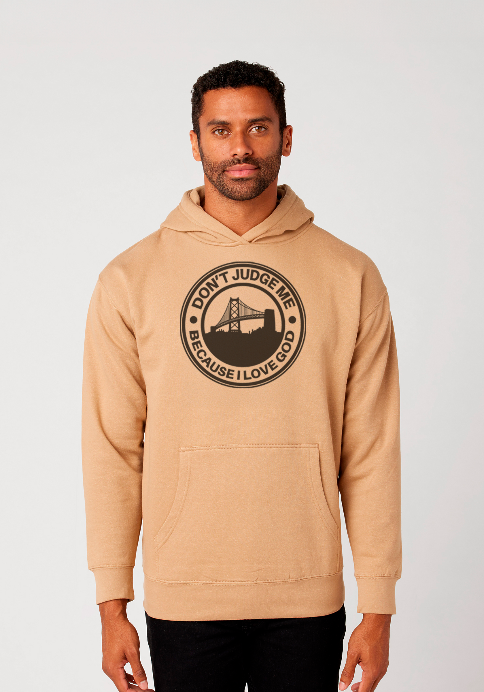 This premium unisex hoodie brings together the iconic Bay Bridge with a bold message of belief. Featuring our signature “Don’t Judge Me Because I Love God” statement, this piece represents faith, resilience, and real life — all while repping The Town.